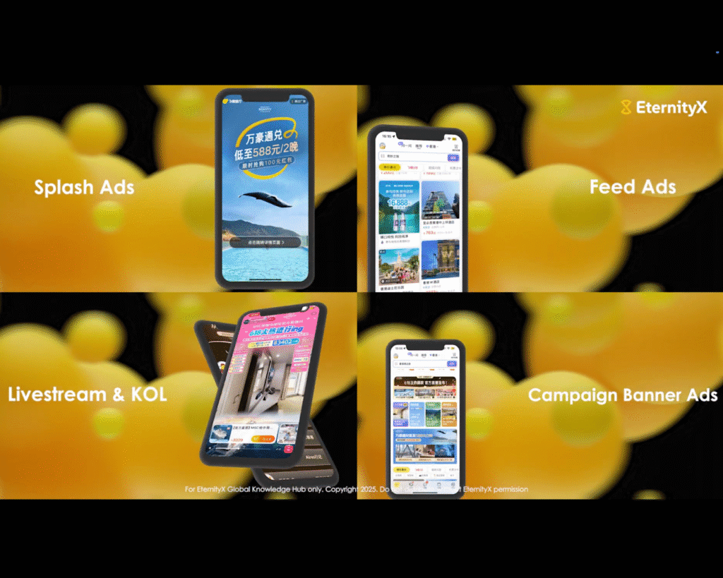 Contact us today — EternityX is an  official media reseller of Fliggy, offering full-service support for your travel marketing campaigns. We provide brands with direct access to Fliggy’s advertising ecosystem — supported by strategic planning, creative localization, and performance optimization.